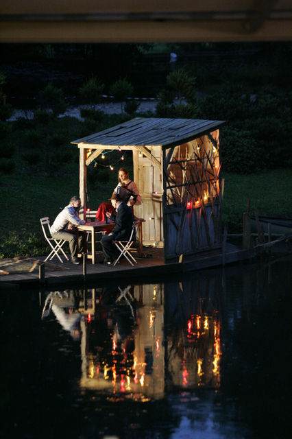 Le Théâtre de la Faisanderie, dont la scène repose sur un étang, accueille chaque été depuis 17 ans le Festival « La Scène au Jardin ».
